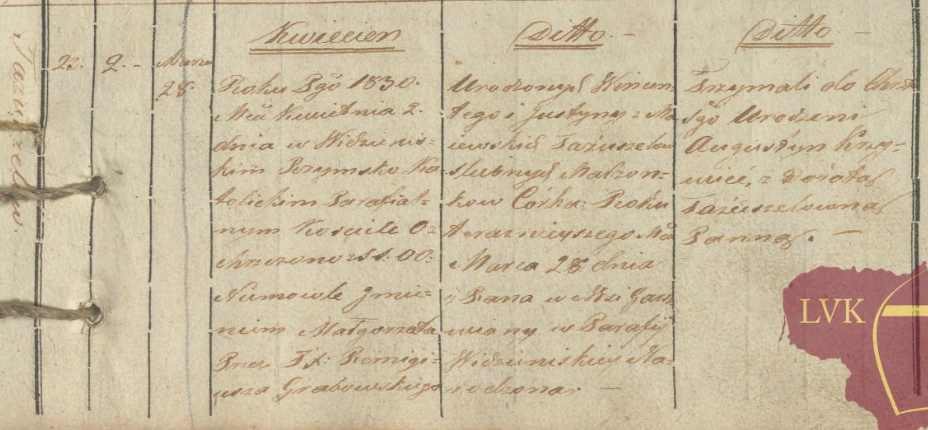 Poniżej skan księgi parafialnej z wpisem tego ślubu, niestety nie posiadam tłumaczenia (poz. 28).